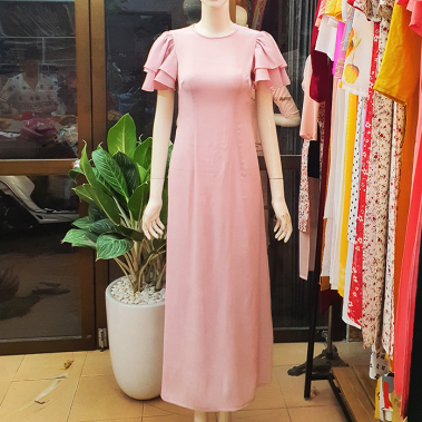 Áo dài cách tân màu hồng nhạt tay bồng 2 lớp mã số PTAD005
