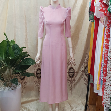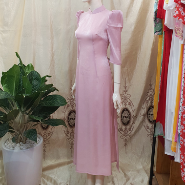 Áo dài cách tân màu hồng nhạt tay lỡ vai bồng mã số PTAD008 Xem ảnh lớn