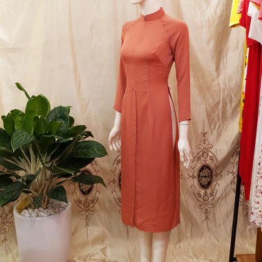 Áo dài cách tân màu nâu xẻ tà tay lỡ mã số PTAD019