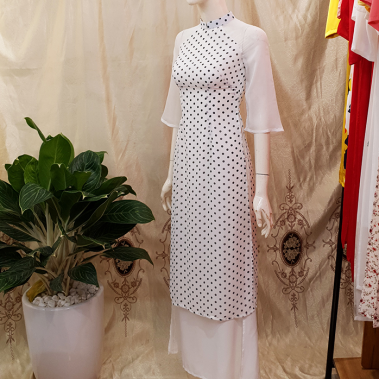 Áo dài cách tân màu trắng chấm bi tay lỡ mã số PTAD015 Xem ảnh lớn