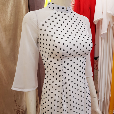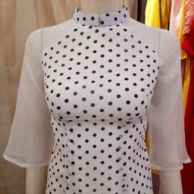 Áo dài cách tân màu trắng chấm bi tay lỡ mã số PTAD015