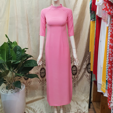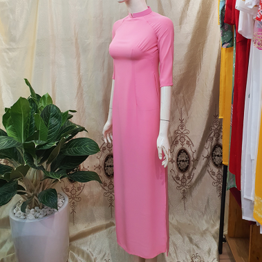 Áo dài chụp ảnh kỷ yếu màu hồng nhạt tay lỡ mã số PTAD012